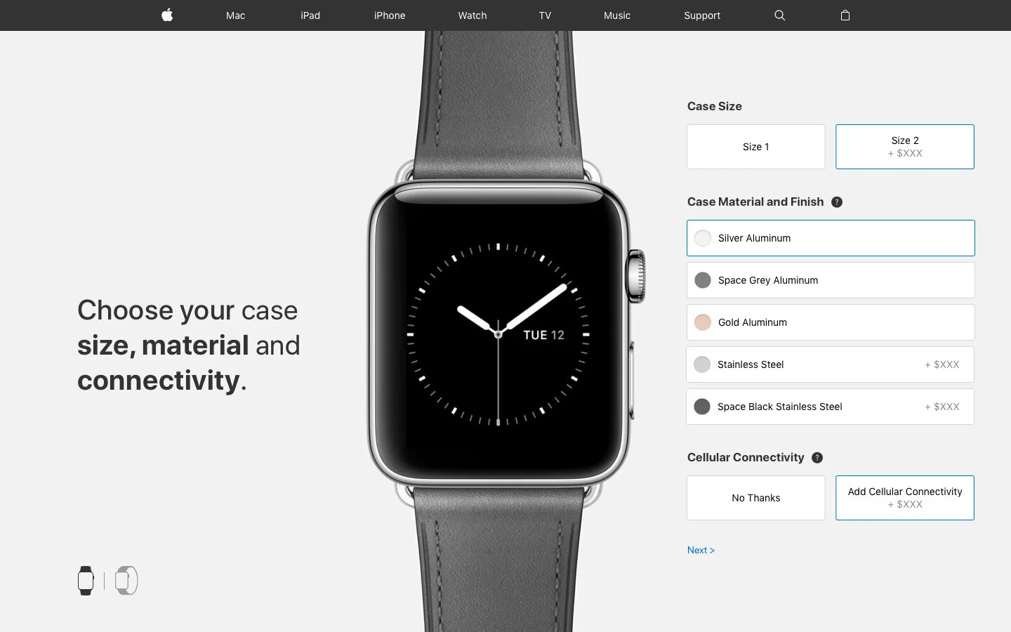 Design a digital shopping experience that allows customers to fully customize their Apple Watch Series 5, online and in-store.